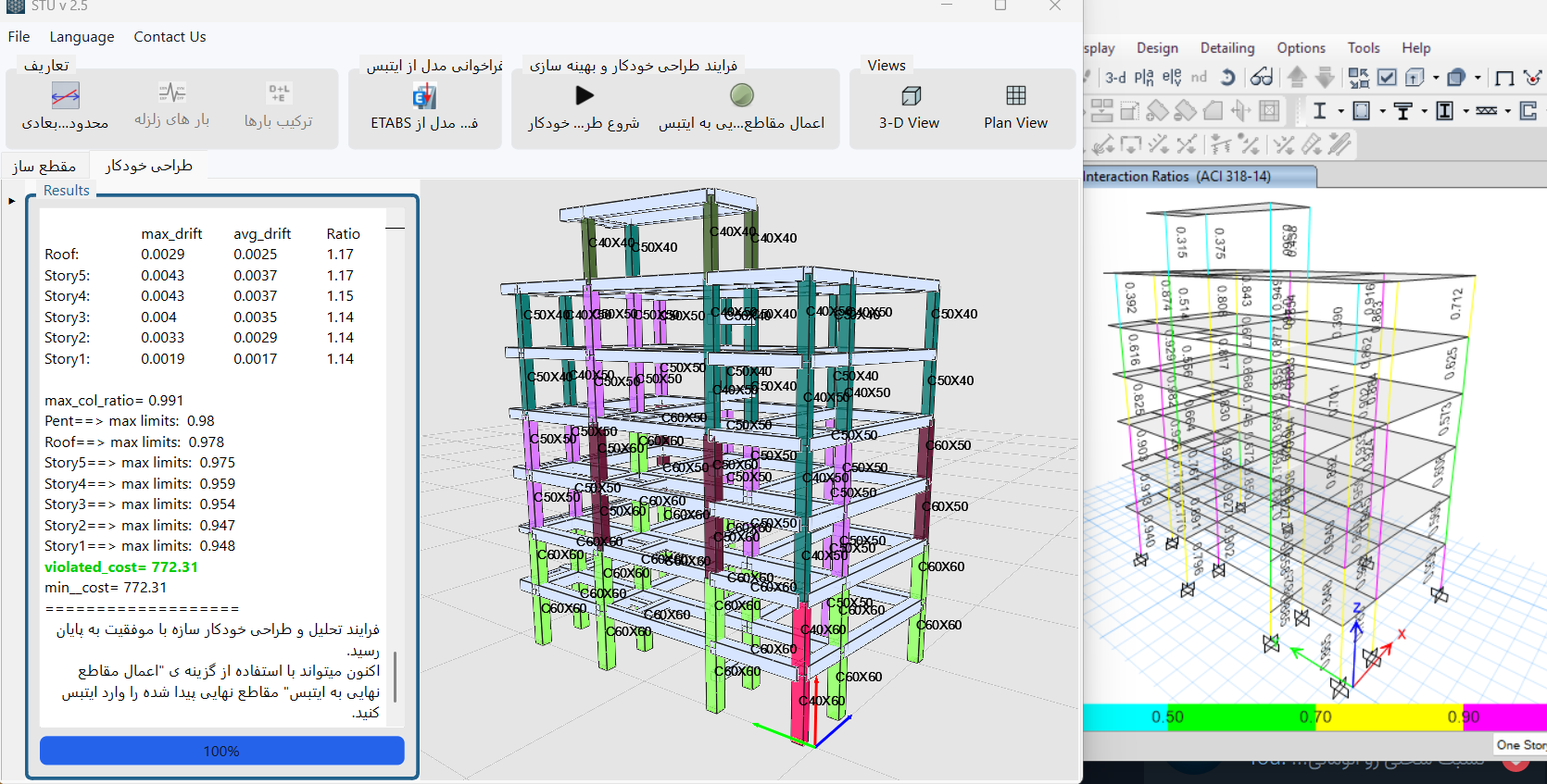 خودش شروع میکنه وصل میشه به ایتبس و اطلاعات مدل رو میگیره و هی تحلیل و طراحی میکنه (مستقل از ایتبس و داخل خود STU) و ازشون یاد میگیره و بهبود میده (با هوش مصنوعی) در کمتر از یک ساعت طرح نهایی رو به صورت فایل ایتبس به همراه گزارش محاسبات آماده میکنه و تحویل میده.